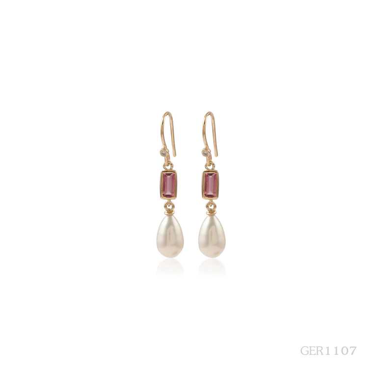 Diamond, Pink Tourmaline, White Pearl gold earring, 18k gold earring, gold jewellery sale, Multi gemstone gold earring, gold jewelry manufacturers, sustainable jewellery recycled jewellery